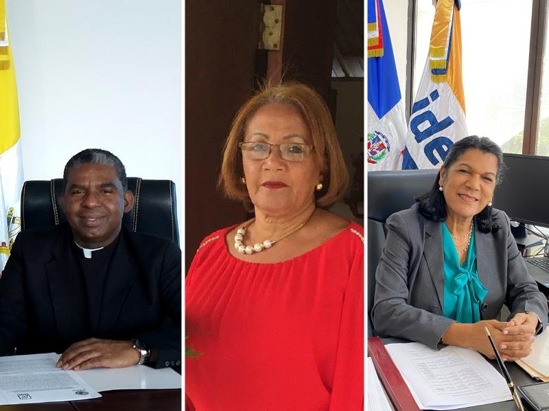 De derecha a izquierda, la directora ejecutiva del IDEICE, Carmen Caraballo; la directora de la Regional de Educación 06 de La Vega, Luz del Alba Luciano Marmolejos; y el rector de UCATECI, reverendo padre Sergio de la Cruz de los Santos.