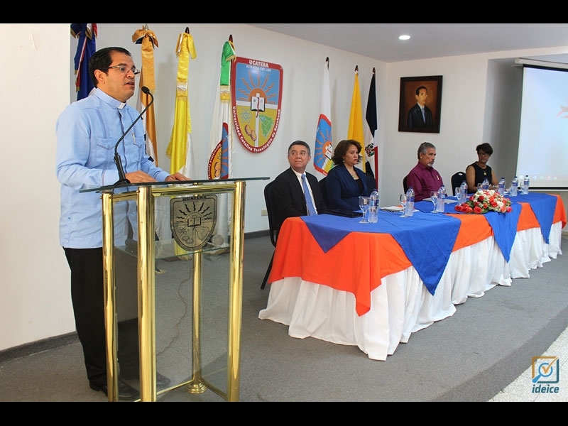 Además del rector Secilio Espinal, y del director ejecutivo Julio Leonardo Valeirón, la mesa principal fue conformada por la vicerrectora académica de UCATEBA Virginia Méndez; el doctor Julio César Mejía; e Isabel Ruiz, en representación de los expositores de IDEICE.