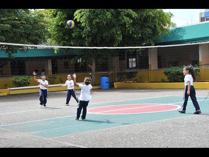 Práctica de Voleibol en una clase de Educación Física.