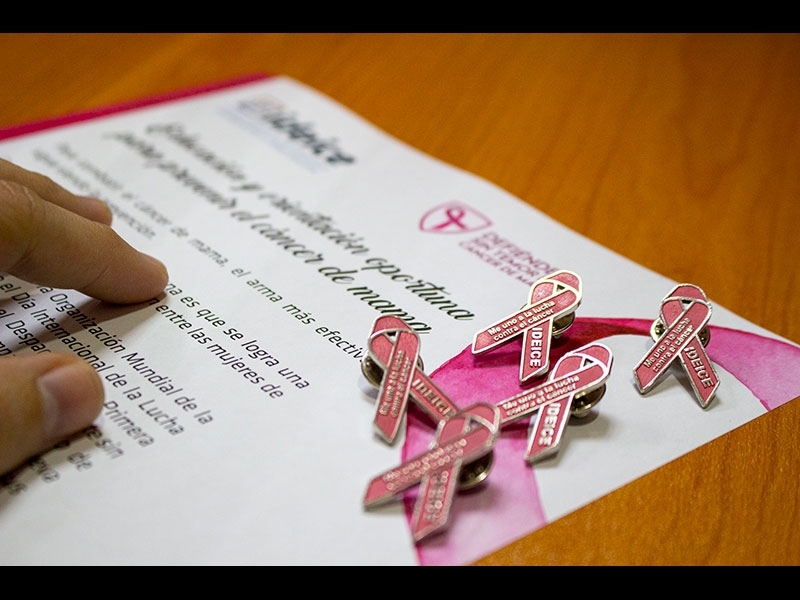 Los servidores del IDEICE reciben pin con forma de lazo rosado, para convertirse en “embajadores” de informaciones relevantes que, sin importar el lugar, sirvan para orientar sobre la importancia de realizarse un autoexamen y llegar “a tiempo” al consultorio de los especialistas.