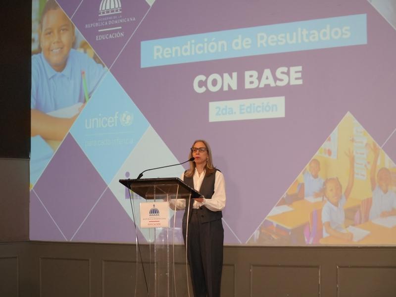 El programa "CON BASE" es una iniciativa del Minerd, oficializada por el Consejo Nacional de Educación (CNE), mediante la ordenanza 01-2023, que se ejecuta desde noviembre de 2022 con el apoyo del Fondo de las Naciones Unidas para la Infancia (UNICEF) con el propósito de promover el aprendizaje de calidad en lectura, escritura y matemática de los estudiantes, antes de los ocho años, como base y condición indispensable para seguir aprendiendo a lo largo de la vida.