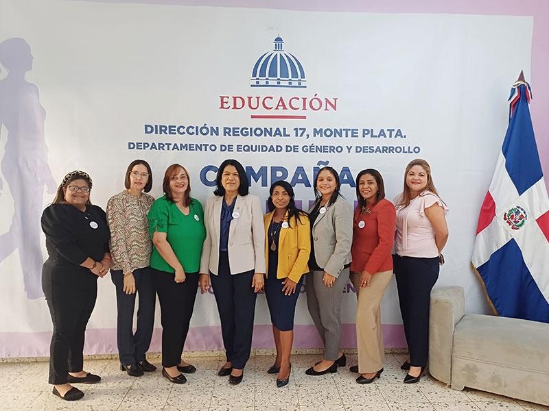 Participaron en la actividad: Ángela de la Cruz, coordinadora del eje metropolitano de la Dirección de Equidad de Género y Desarrollo del Minerd; Mirna Dessirre Espinosa, técnico regional de Género, quien representó a Enrique De La Cruz, director regional; y Glaidira Leyba Herrera, directora adjunta distrital 17-02, de Monte Plata.