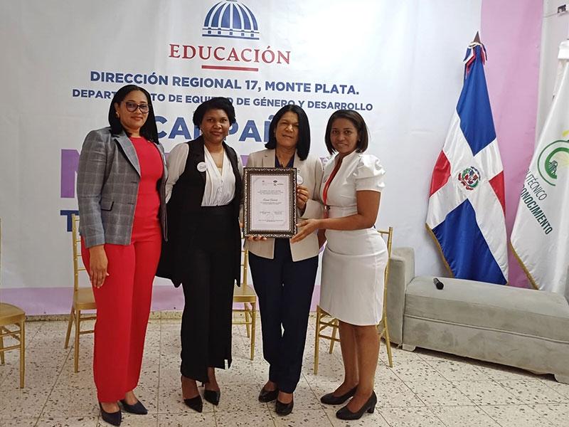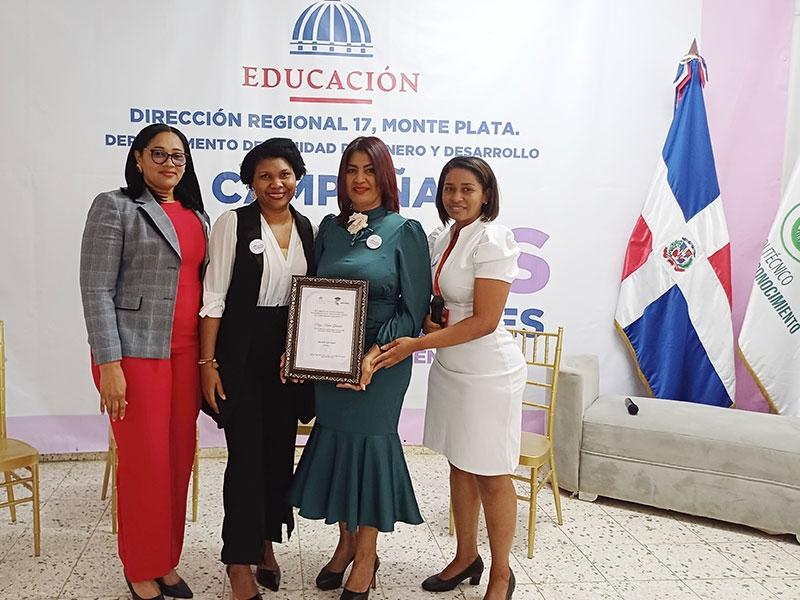 MONTE PLATA.- El Politécnico Ciudad del Conocimiento y la Dirección de la Regional de Educación 17, Monte Plata, distinguieron como "Mujeres trascendentales" a cuatro destacadas educadoras.
