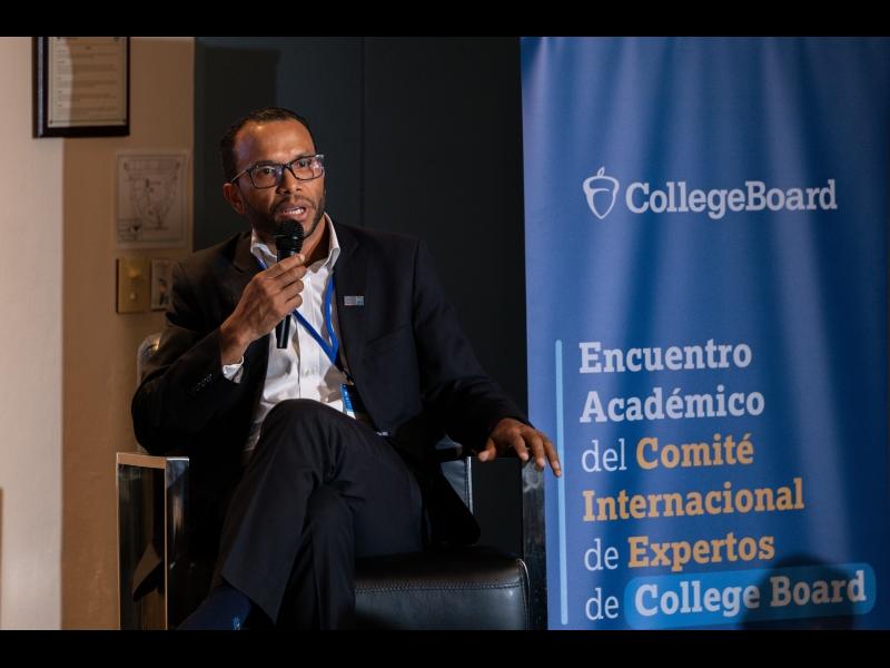 El doctor Adrián Gutiérrez, en nombre del Ideice y su director ejecutivo, doctor Jesús Andújar, la invitación y acogida, durante el evento internacional del College Board.